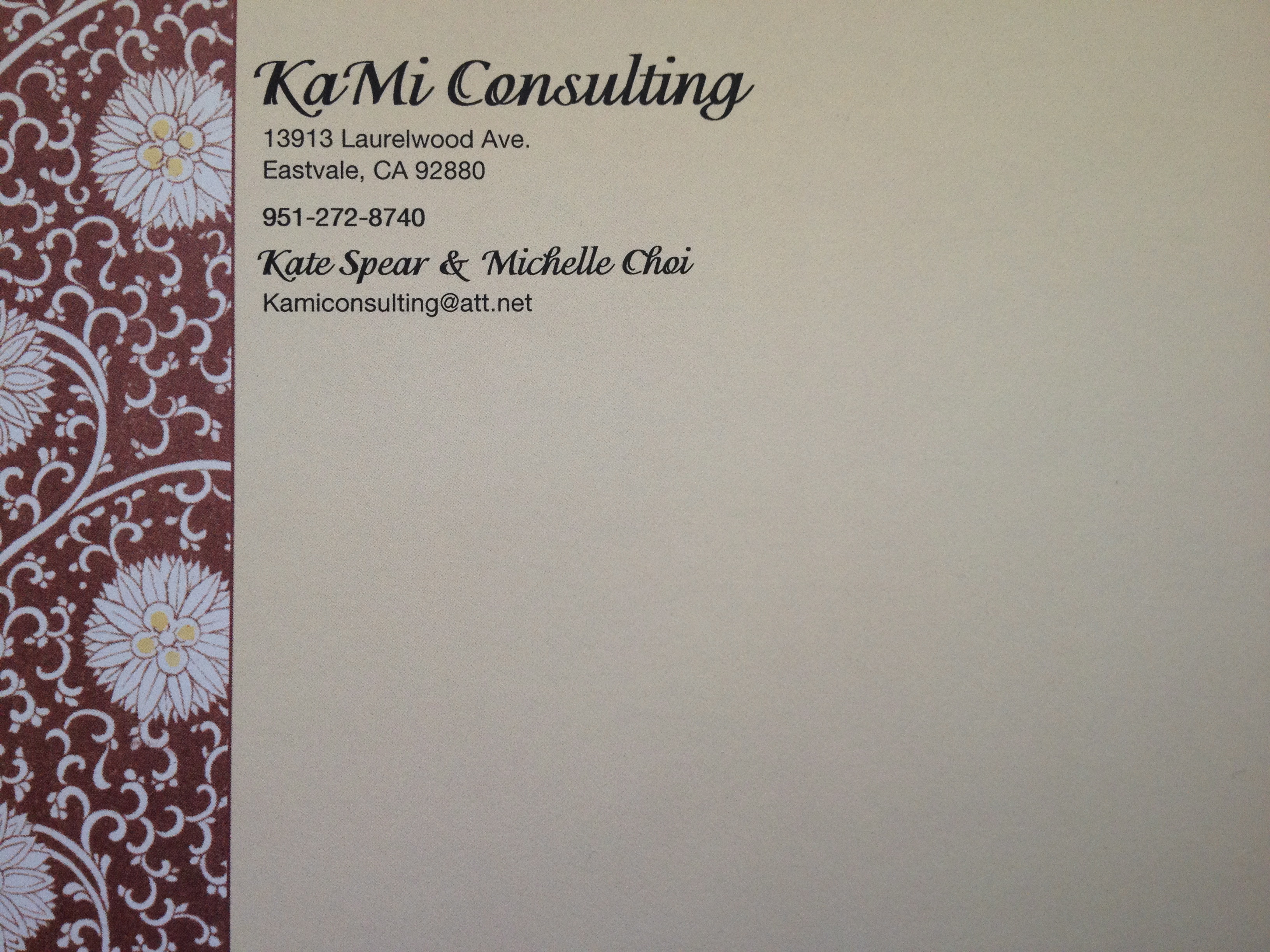 Contact Us Please send us an email at Kamiconsulting@att.net or give us a call (909) 210-3443 for more information! Share this: Click to share on X (Opens in new window) X Click to share on Facebook (Opens in new window) Facebook More Click to share on Pinterest (Opens in new window) Pinterest Like Loading...