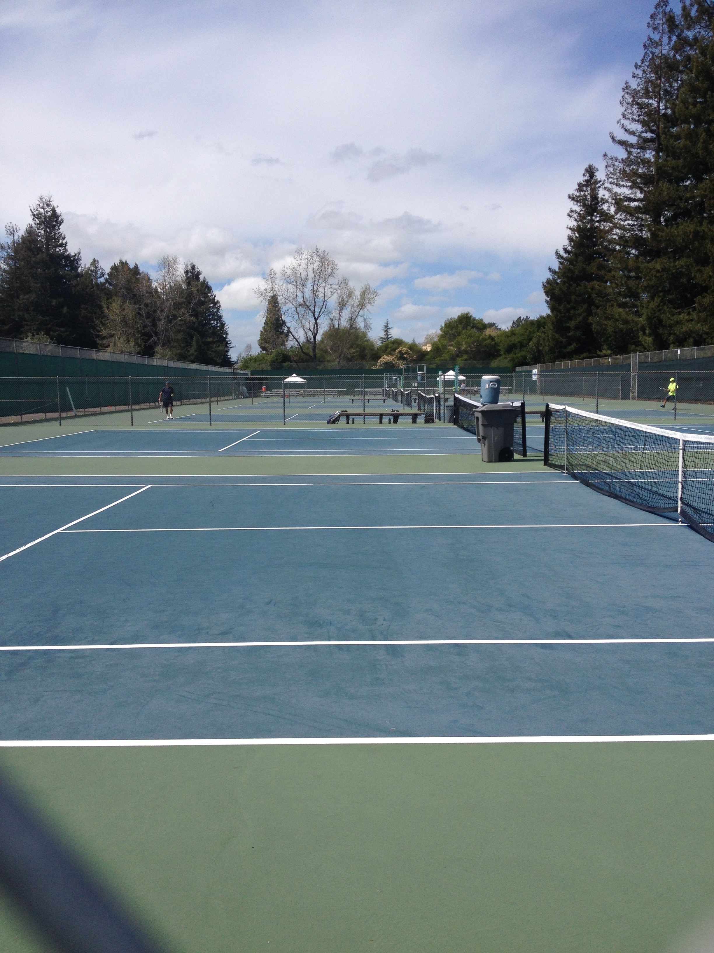 Tennis courts, parking structure, and Stan Sheriff Center.