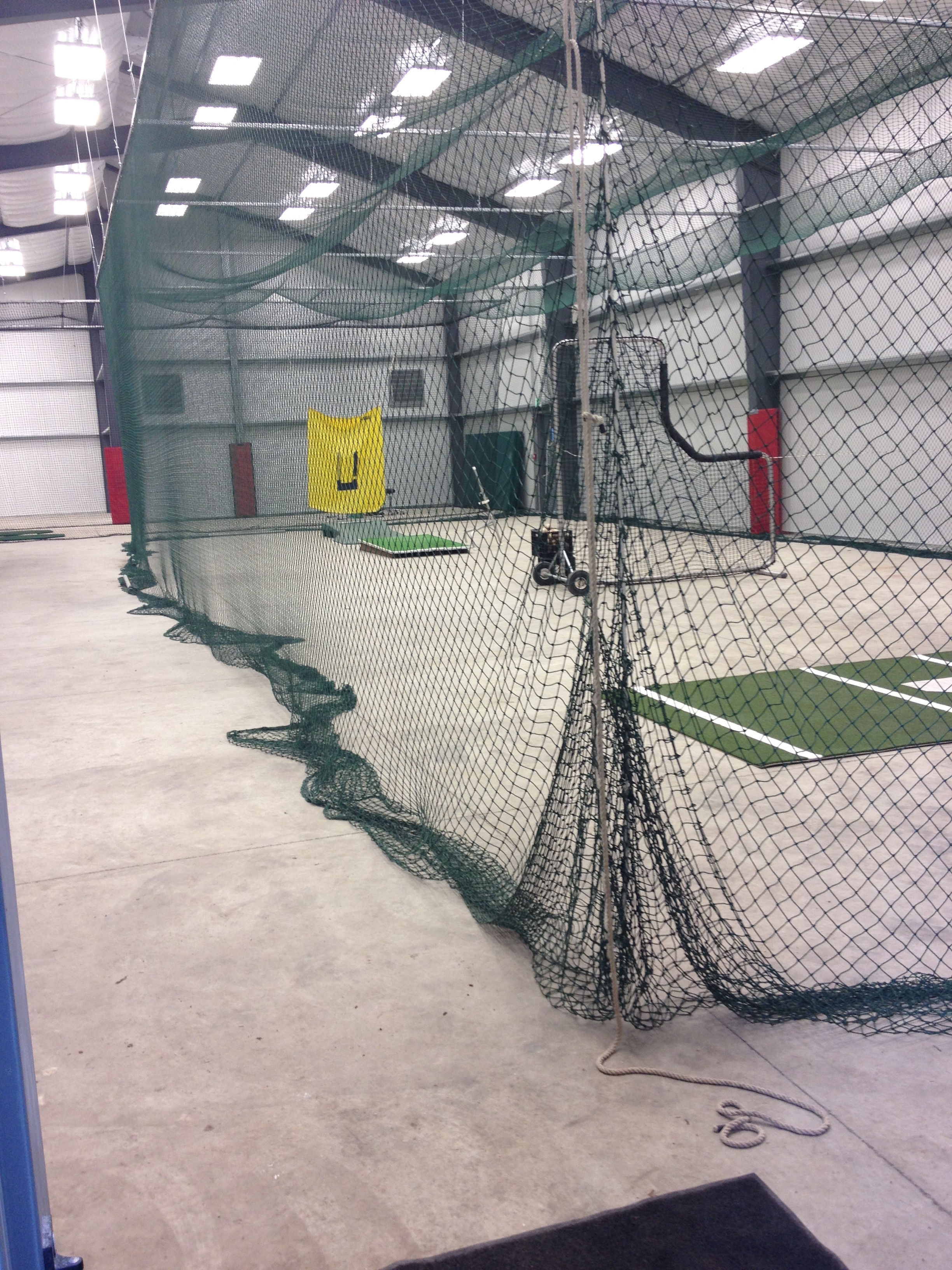 The door was open, so we snuck a peek into the indoor baseball facility!